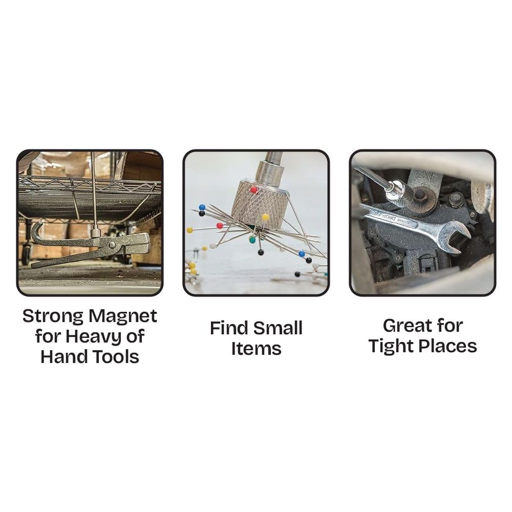 - Retrieves hard-to-reach metal objects with a powerful 3 lb. magnetic head that securely lifts screws, nails, bolts, and other small parts.